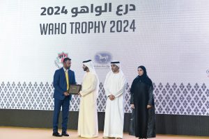 In Emirates Arabian Horse Society have awarded the 2024 WAHO trophy to the stallion Mubeed. Mubeed has been a successful racehorse with many wins and places over various distances. Highlights include a Group 3 win, two Group 1 race wins at Meydan, Dubai and finishing 3rd in the Group 1 Dubai Kuhayla Classic trained by Jaber Bittar.